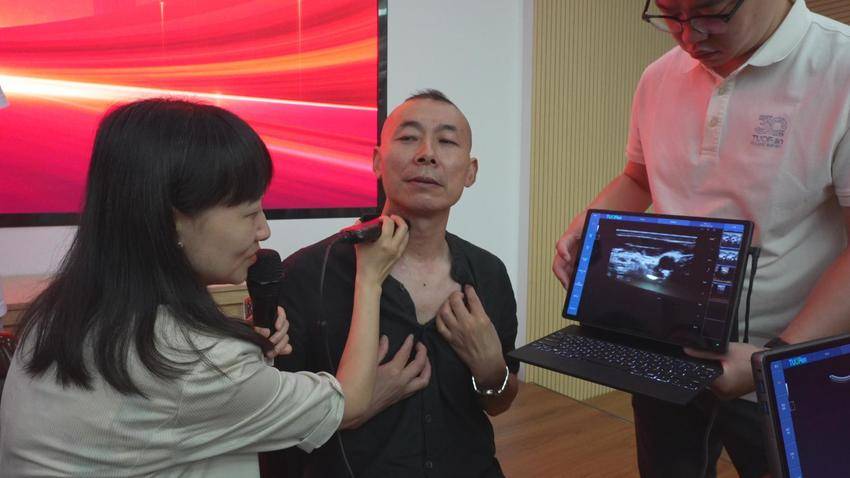 “这套系统就像给基层医生装上了‘透视眼’和‘顺风耳’,特别是对甲状腺结节、乳腺肿块这些‘狡猾’的部位,诊断起来更有底气了!”襄阳市中心医院超声科主任王瑜形象地比喻道。她介绍,依托5G网络低于0.1秒的极速响应和纤毫毕现的高清画质,远程诊断的精准度得到了坚实保障。目前服务已覆盖腹部、妇产、心血管等常见项目,“未来,我们还将把这只‘千里眼’伸向介入超声等更精细的领域,让基层救治能力再上新台阶。”活动现场,基层医生的学习热情十分高涨。襄阳市中心医院超声医学科副主任秦闻被大家层层围住,她耐心细致地手把手教学,不仅将掌超操作的“独家秘籍”倾囊相授,还把急重症超声诊断的“实战宝典”分享给了在场的基层医生们。